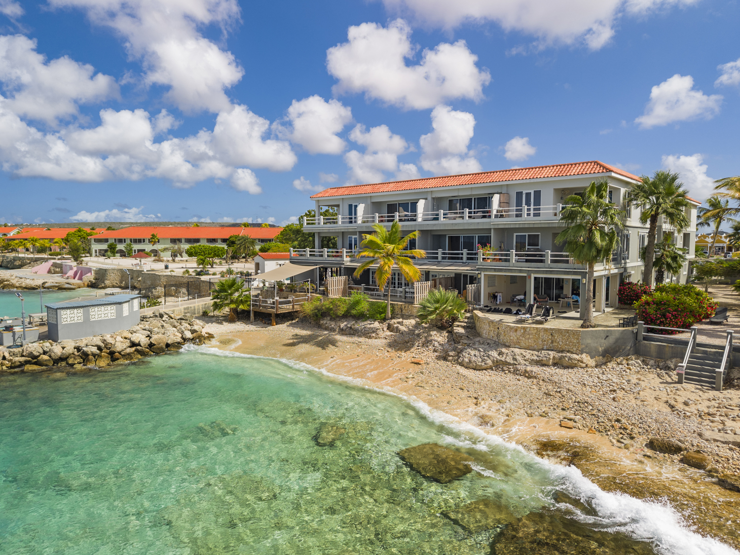 Situated in one of the most beautiful locations on the island, this one-bedroom apartment is offered within the Den Laman complex. The apartment is located directly on the oceanfront, with the private beach of the complex right in front, providing easy access to swimming, snorkeling, and diving in Bonaire’s crystal-clear waters.